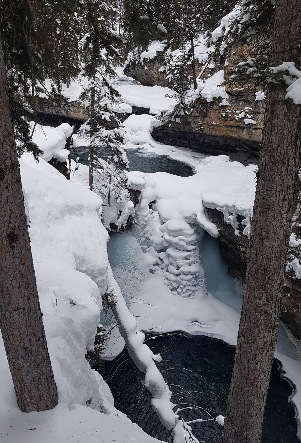 Johnson’s Canyon is a favourite of tourists in the summer, but locals can visit it in the winter and have it all to themselves. It’s impressive any time of year, but well worth a visit in the winter.