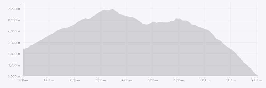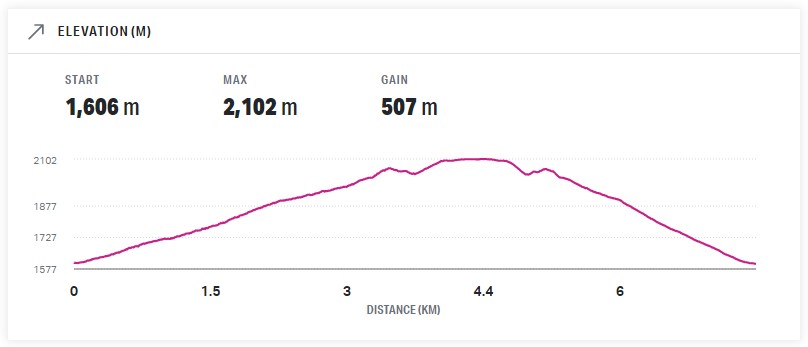Distance to the south summit is about 4.5 km. Elevation gain is 507 m.