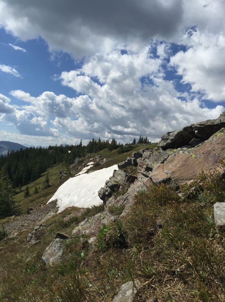 There is a major slump in the trail. I think there is an underground spring, and the 2013 floods probably swelled it past it’s normal limits. You can see the South summit of Powderface Ridge in the background. This shows how much elevation you lose making your way to the North summit.