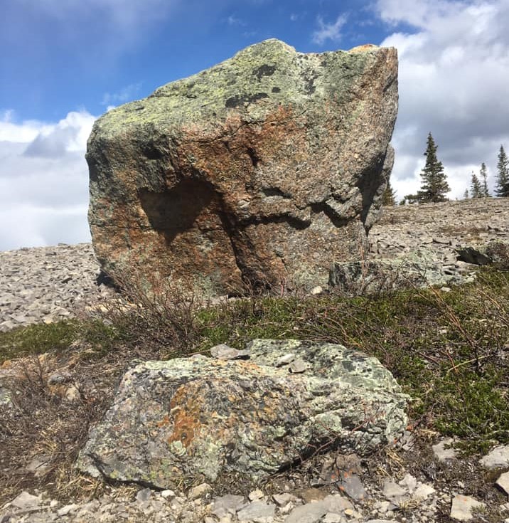 As you get closer to the south summit, you will hike through gorgeous meadows. Keep your eyes open for an erratic that is in a meadow off to the right. An erratic is a large boulder carried here by a glacier, and deposited when the glacier melted.