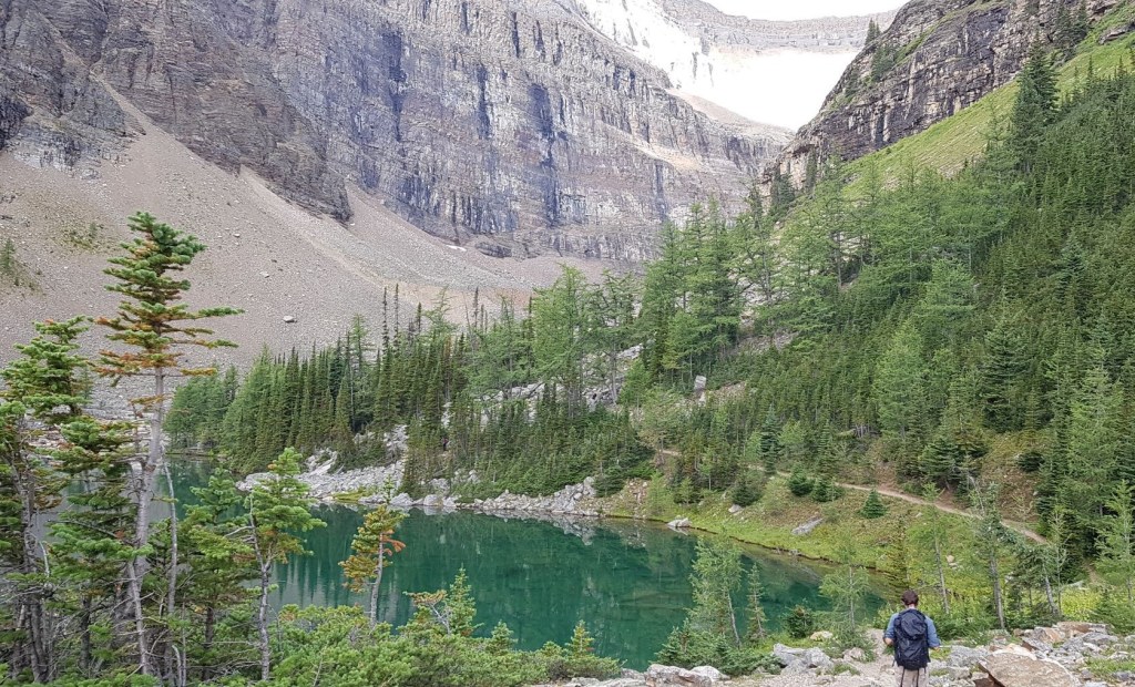 From the Big Beehive pass, go back down the switchbacks towards Lake Agnes.