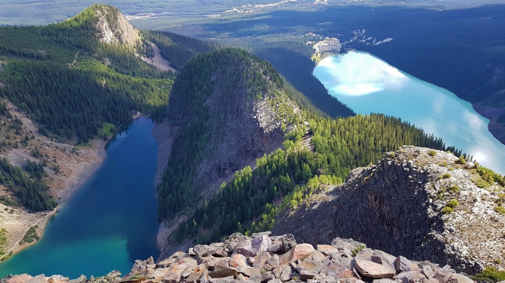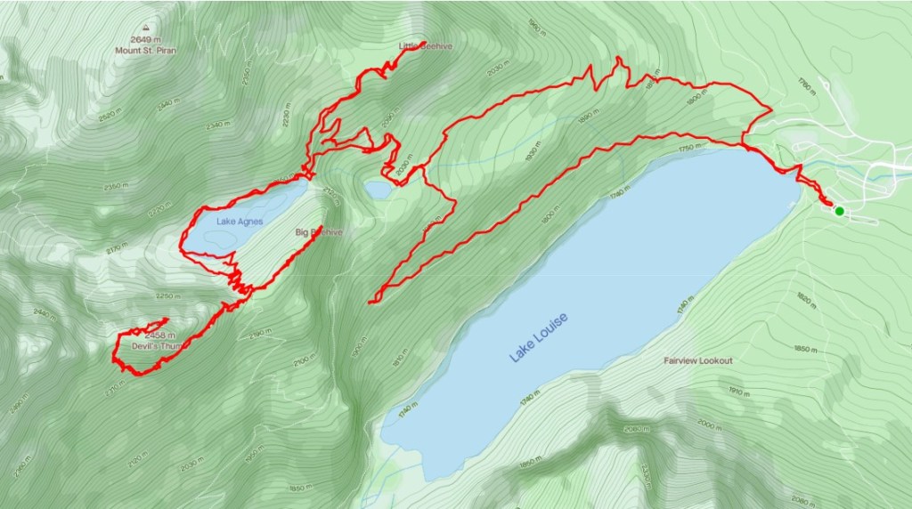 Devil’s Thumb is an outcrop sandwiched between the Big Beehive and Mount Whyte in the Lake Louise area. The main benefit of hiking up here is the amazing views of both Lake Agnes and Lake Louise. This is such an iconic view, that it was featured on the front cover of National Geographic Canada magazine. Ever since I saw that photo, I wanted to go.