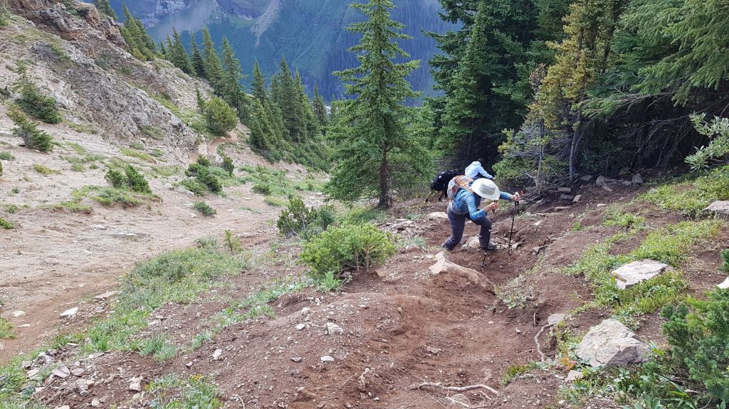 We basically hiked straight up this section. The trail is getting pretty beat up here, and it’s more or less a steep and slippery dirt track.