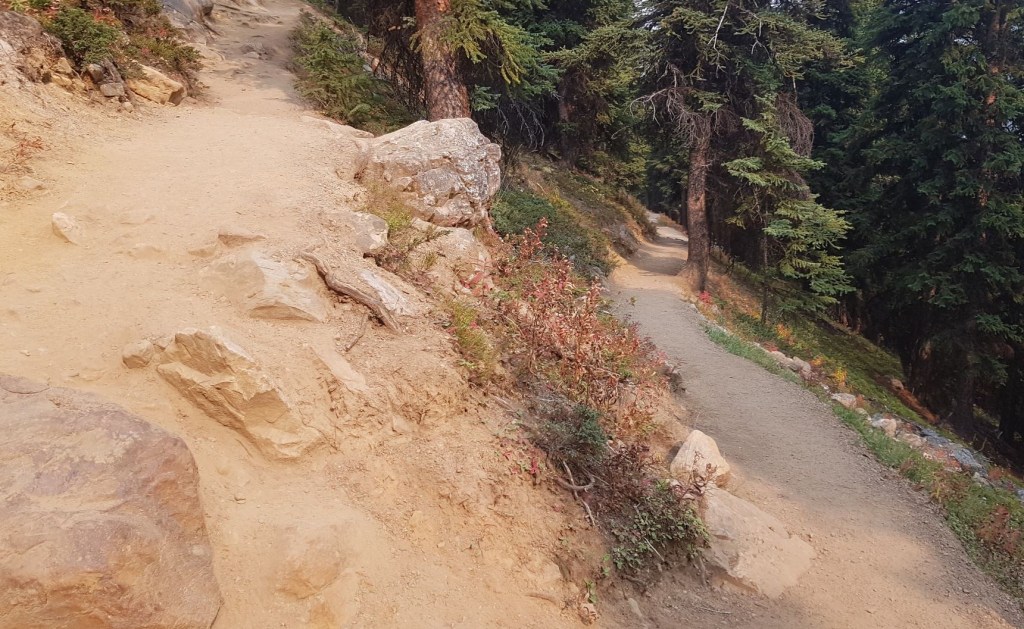 For the switchbacks on the lower slope above Moraine Lake, please do not take the “short cuts” between the trails. This ruins the trail, erodes the hillside, and makes a mess, especially in wet weather. There are plenty of signs asking you not to do this, but like I said, people behaving poorly…