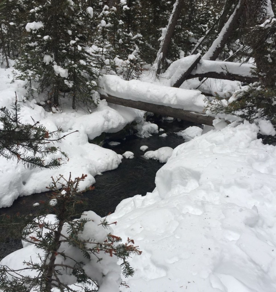 This is the Karst Springs in the Mount Shark area. While this is mainly a cross-country ski area, they do have some snowshoe trails.