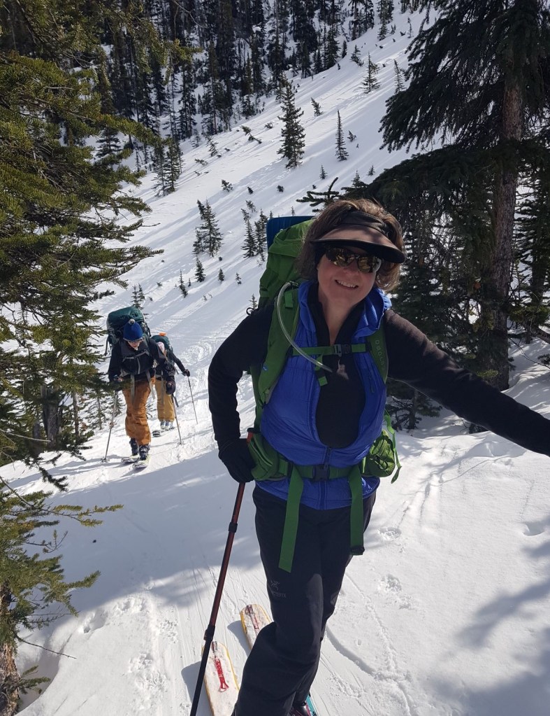 Behind me is the top of the ‘luge run’ in the trees. My father-in-law Franz Dopf has skied here since the early 1950s, and it was always treed. Franz and my husband Mike skied up over twenty years ago and were shocked to find the entire area wiped out from an avalanche.