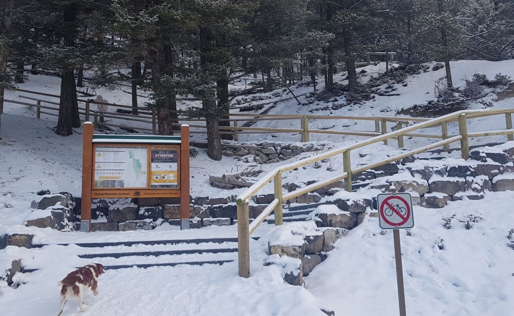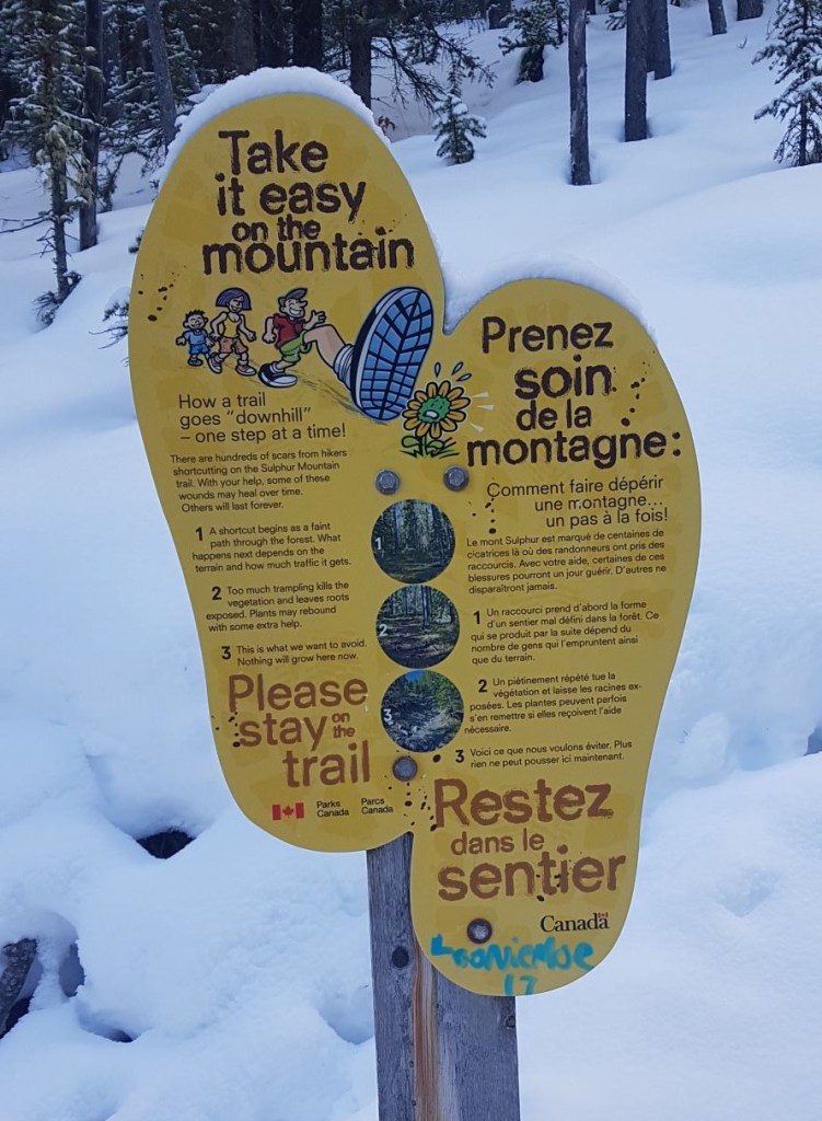 I believe I read that Tunnel Mountain is Canada’s most hiked mountain. As such, a mountain like this takes a beating from everyone trampling it. It is vital that everyone stays on the main, marked trail. Please do not take short-cuts between the switchbacks, or unduly trample vegetation. The trail is wide enough for everyone to pass single file safely.