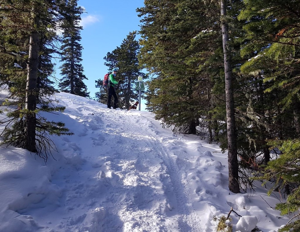 In the winter though, there is a troubling trend whereby people sit down and slide through the steep parts. Please do NOT do this. It absolutely ruins the trail for anyone else coming up or down after you. When hiking down in steep snow, here are two tips: