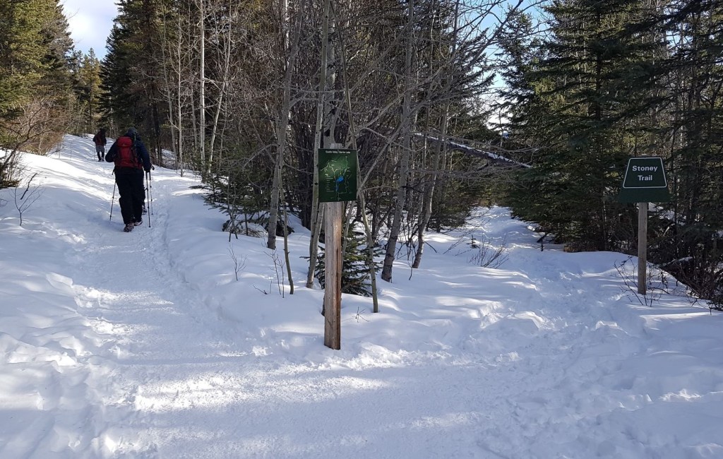 This is the T intersection with the higher Stoney Trail. Turn RIGHT here.