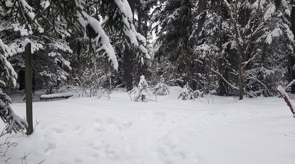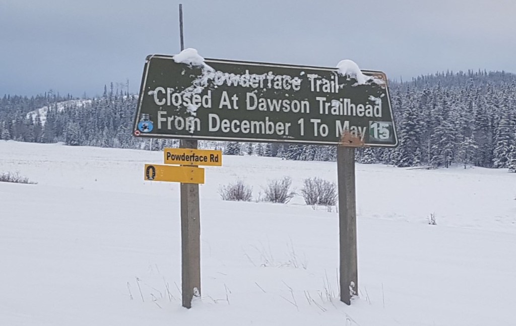 The Powderface Road winds all through the Sibbald / Jumpingpound areas, but is closed in the winter. We parked at the winter gate.