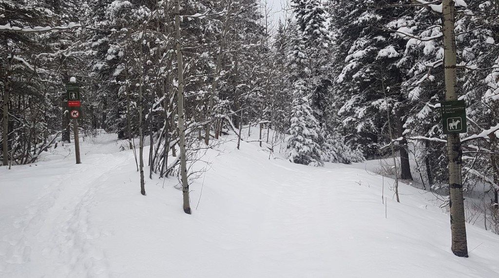 Prior to the winter gate is the Dawson Equestrian Campground. I parked here in the winter. In the summer, double-check that it is okay for non-equestrian vehicles to park here. At the very least, be aware that horse trailers take a lot of room to maneuver and turn around, so don’t take up the whole lot with cars.