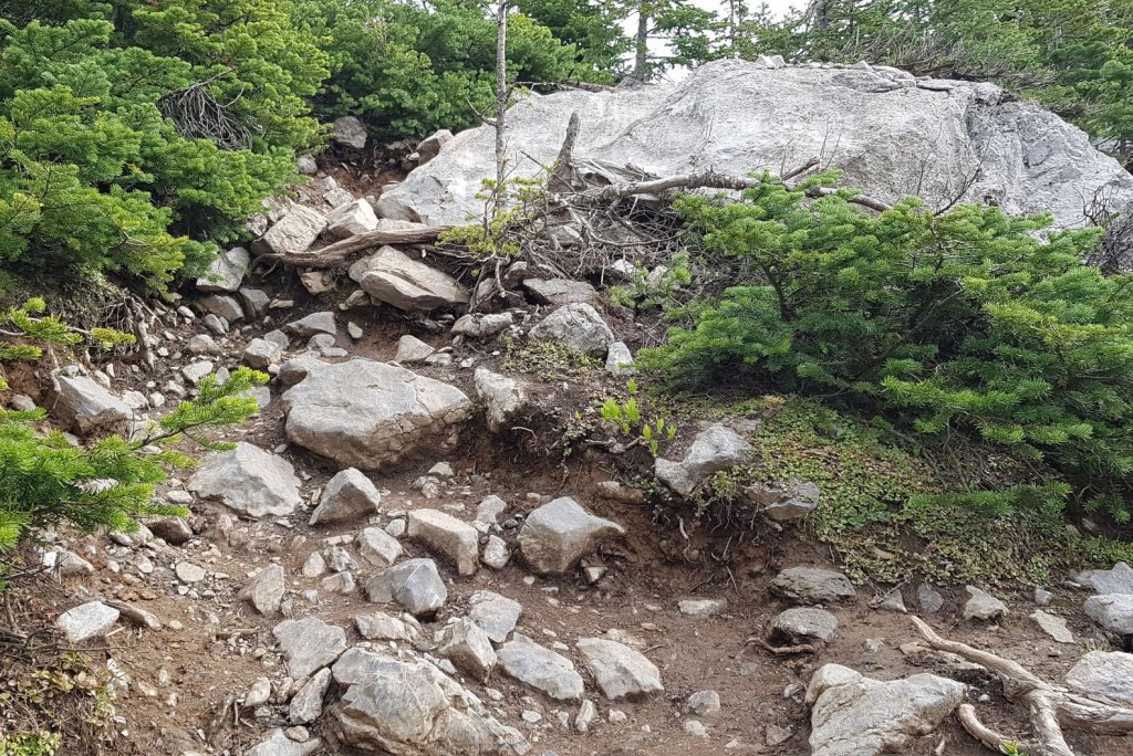 Once I crossed the boulder field, I re-entered the forest. Here, the trail was pretty much up, and then more up.