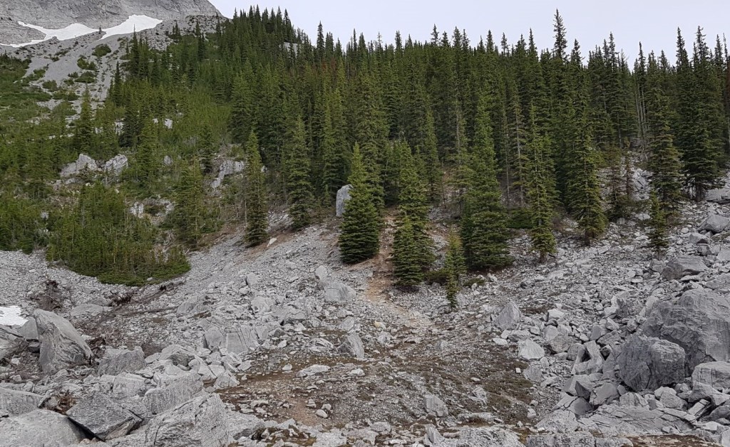 The trees end in another, smaller boulder field.