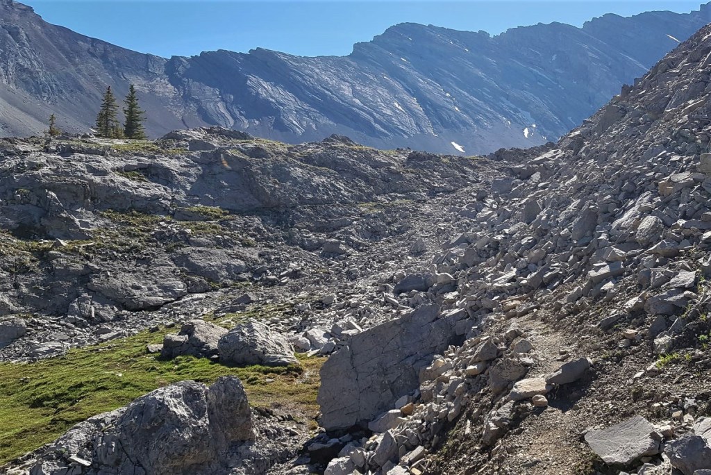 We hiked up this small rubble area. Ahead is an amazing cirque where Lineham Ridge and Highwood Peak meet.
