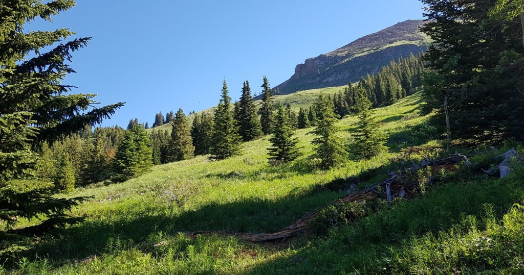 Once we crossed the creek, it was time to regain our lost elevation. That’s okay though, because we had a beautiful meadow to walk through. I remembered this meadow from my first trip, and I was very much looking forward to admiring its beauty again.
