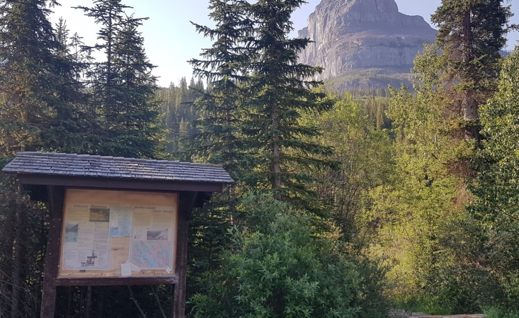 The Stanley Glacier parking lot is on the south side of Highway 93. This area can get congested and busy. Drive with care.