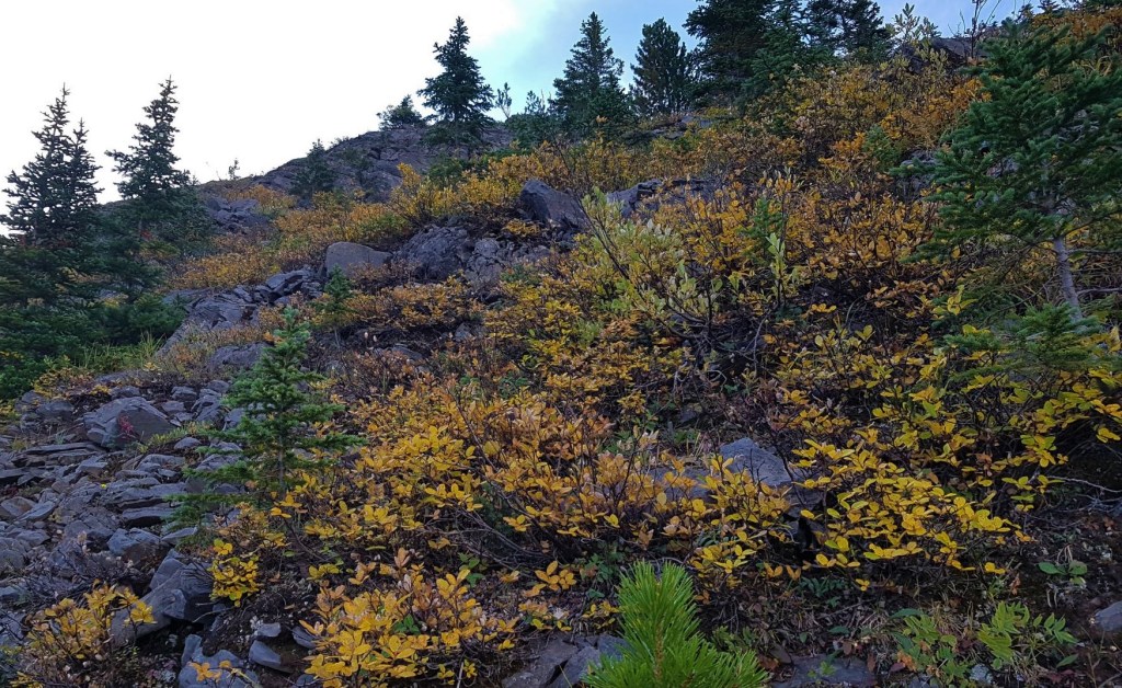 The larch trees were just starting to think about changing colour in early September, but I had lots of red and orange grasses and bushes to admire.