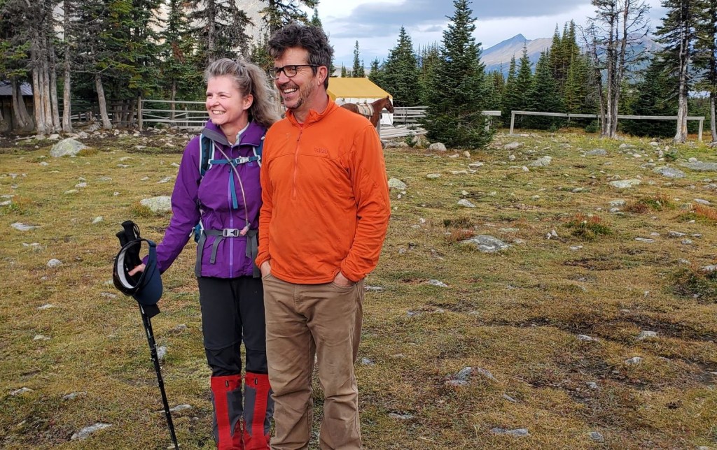 Alisen and Gilbert, owner of Tonquin Valley Adventures. I was SO happy to see Gilbert wearing orange because my big orange tabby cat is named Gilbert. These two guys share some of the same qualities. Both are alpha males who defend their territory vigorously (don’t even THINK about touching stuff once it has been put down for horse packing!). However, they are both big softies who love attention.
