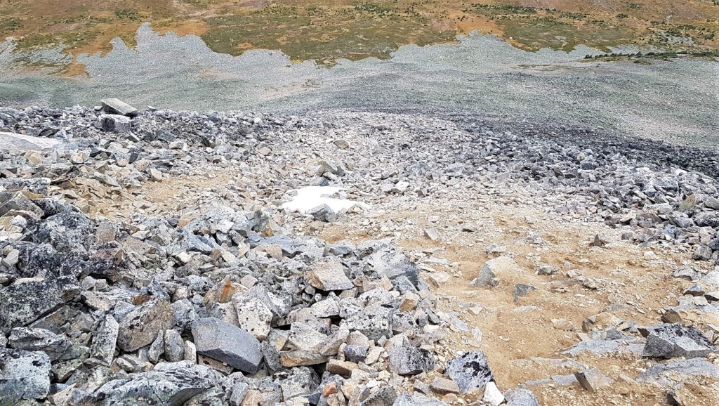 Our patch of snow was directly in line with our scree descent route.