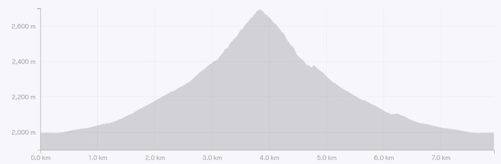 The elevation profile matches the route perfectly. Straight up and down. The walk through the meadow is a lovely warm up though.