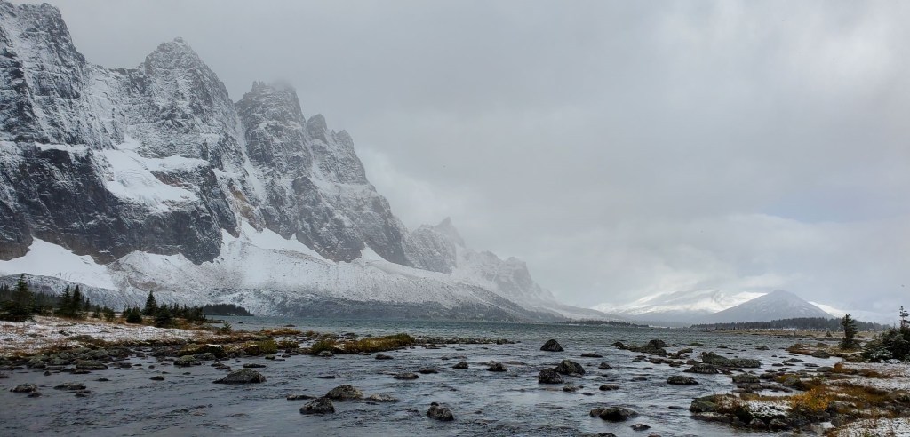 Apart from visiting the hut, we also saw the Warden’s Cabin, and two of the campgrounds in the area. We also talked with several backpackers. They were in good spirits considering the rain and snow, and being soaked themselves. We make ’em hardy up here in Canada.