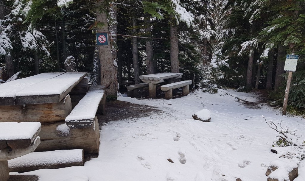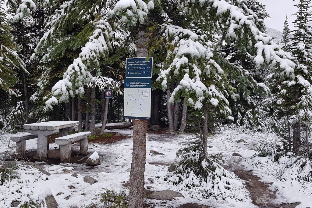 After about another 500 m or so, we came to Surprise Point Campground. Total distance from the Lodge the Surprise Point campground is about 4.5 km.