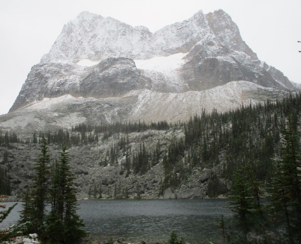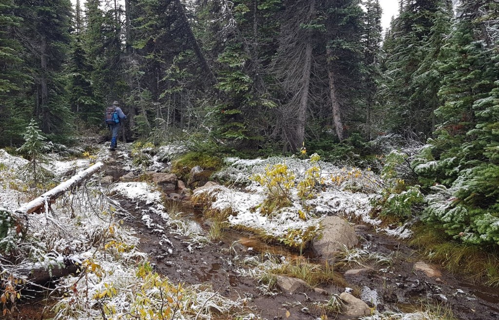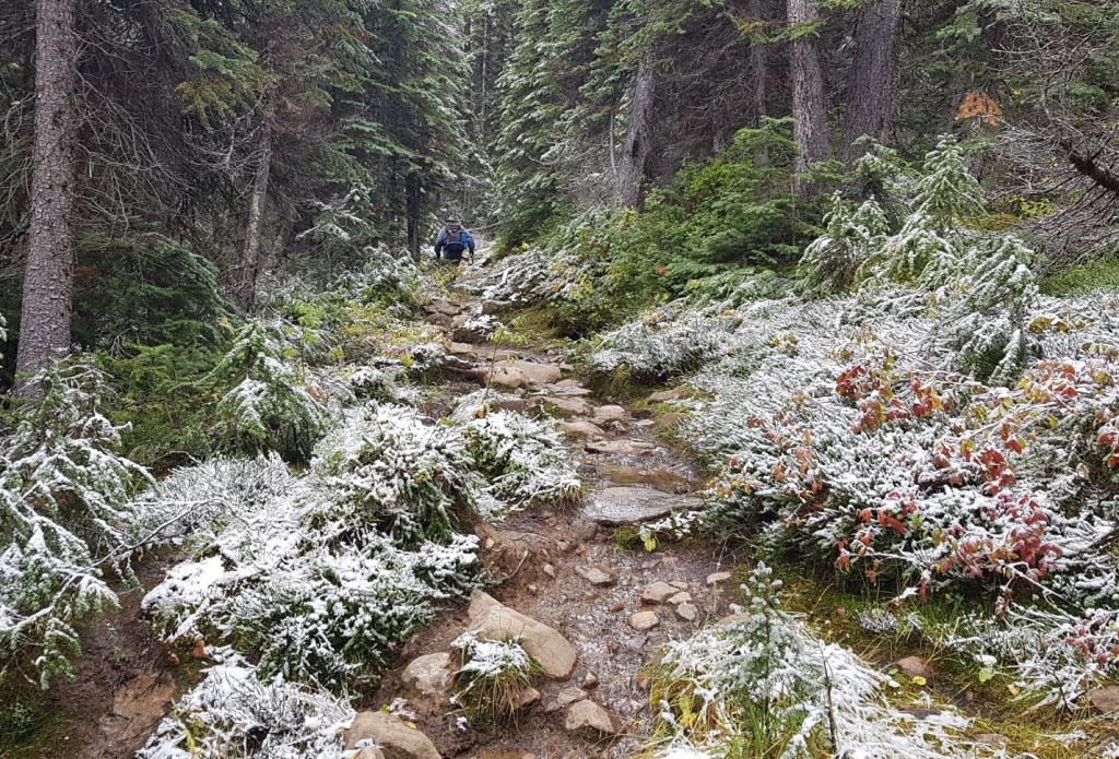Even though the trail was wet, muddy and slippery, the landscape sure looks beautiful covered in a light layer of snow. I’m surprised that some people were backpacking, but I guess it’s a great time of the year to avoid the crowds and the bugs.