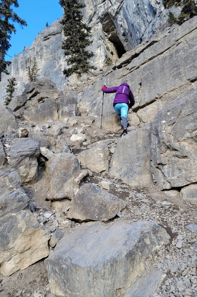 Just below the cave entrance are some giant rock steps. Then it’s a quick straight up to the cave entrance.