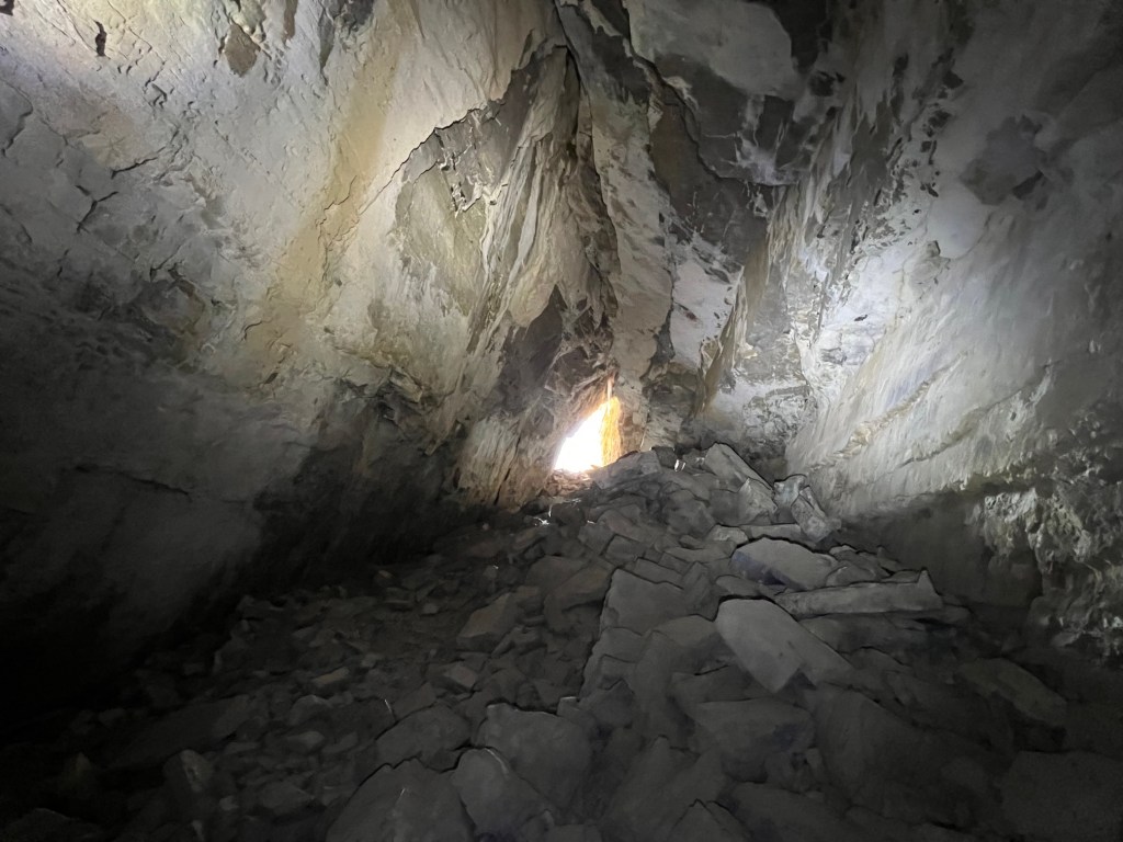 Safety Gear: Please be smart about entering this or any other cave. We had helmets (climbing and bike), with good quality headlamps attached. I also carried a powerful bike light meant for night riding. Always have a back-up light. Even though this cave is not very deep, if you lose your light at the back of the cave, it is 100% pitch black (yes, I tested that). Do not go down anything you can’t get back up.