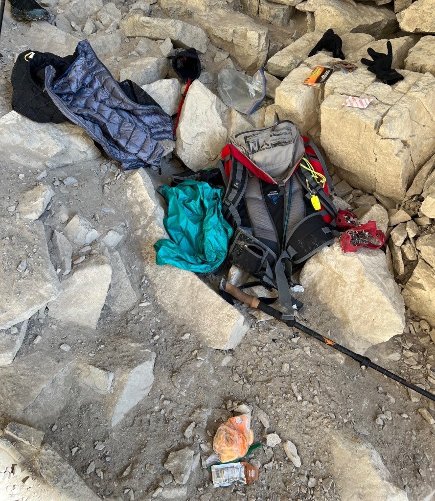 When we got back to the entrance, we had a surprise waiting for us. A pair of ravens decided to open our packs to see what we had to eat. Sonya’s lunch was strewn out and all the good stuff was eaten. These crafty birds even dug out and opened up our hand warmers!