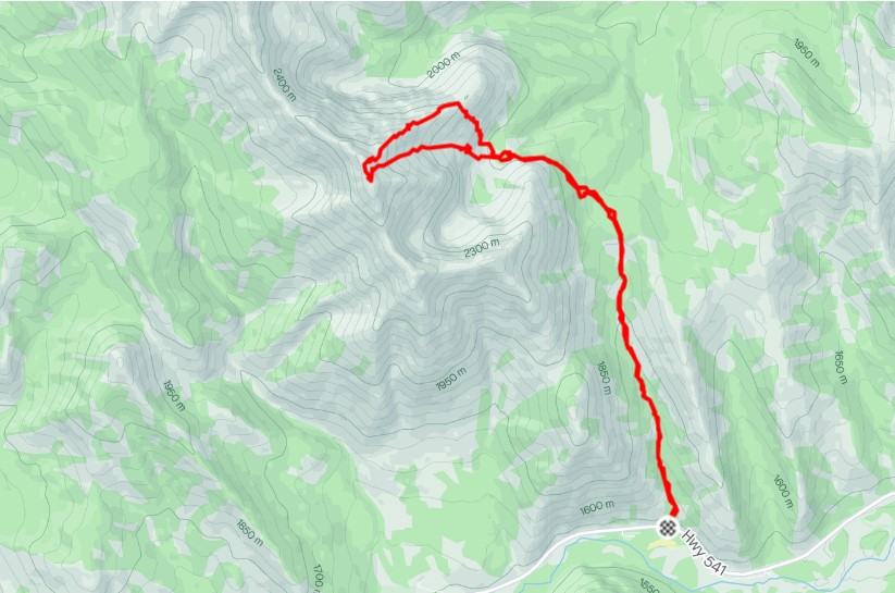 Distance to summit was 7 km. Time was 4 hours, 30 minutes. Elevation gain 1,175 m.