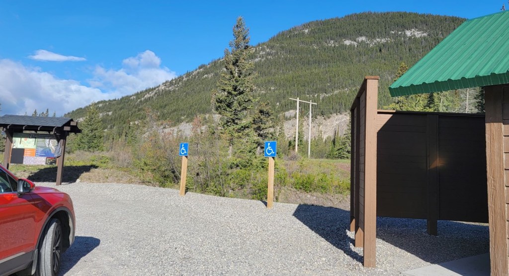Parking is NOT at the trailhead. There is a sign asking people to please park at the Royal Canadian Legion. This is not a day use area. Instead, we stopped at the Jura Creek parking lot and used the toilets there.