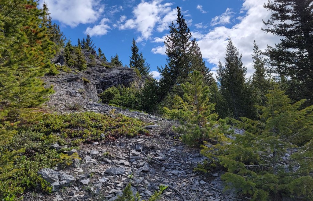 There was this clearing with benches, plus another one further along, that marked the highest point on Exshaw, but both are in the dense trees.