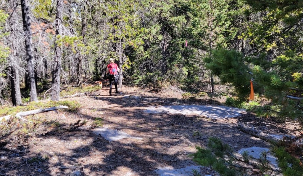 The ridge top was wide, and the trail was sometimes faint. Again, excellent flagging by trail volunteers.