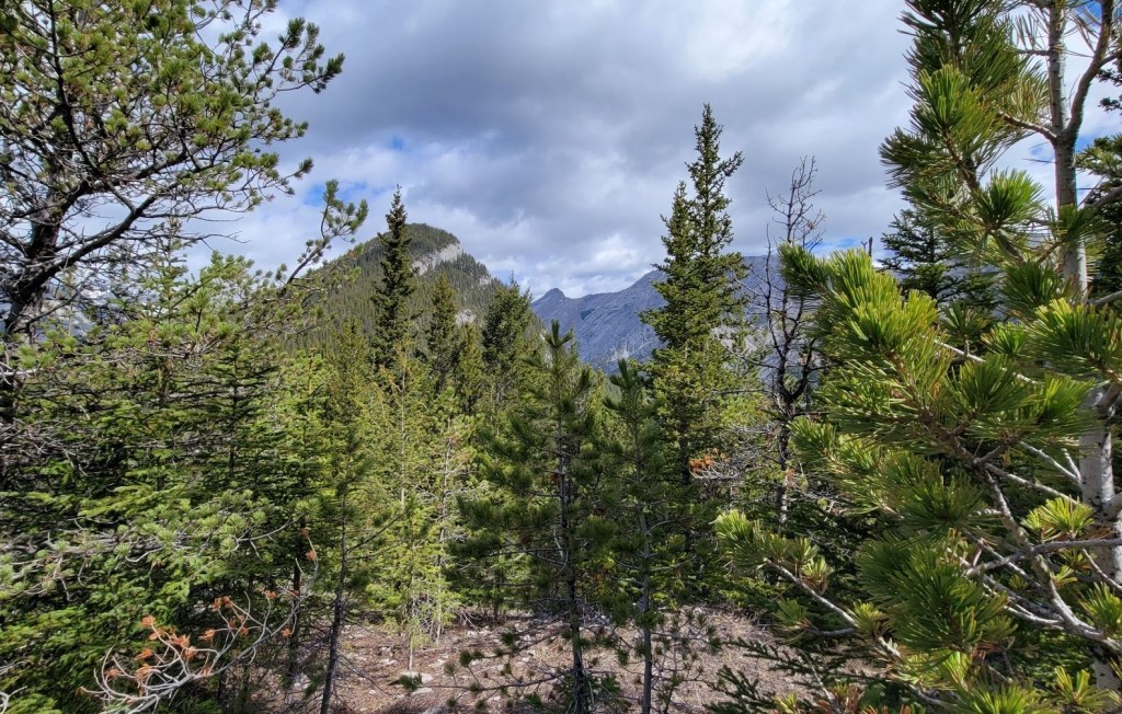 When we finally came to a clearing, we took advantage to look up at the remaining ridge above, and to also turn around and get some views across the Bow valley. I’m glad I stopped and admired the view here, as the summit views were a bit obscured by trees.