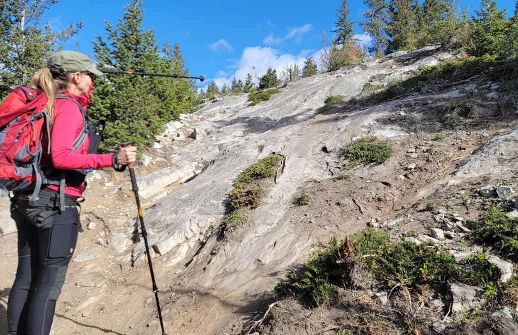 My buddy Sonya was in training for an eight day bike pack trip. She had just done 7 rides in 6 days, and had two more massive gravel rides to come. I needed to find a hike that ticked these boxes: a short hike, close to home, and dry. With the late spring and heavy snowpack this year, we didn’t want to add to trail erosion. Exshaw Mountain was the answer.