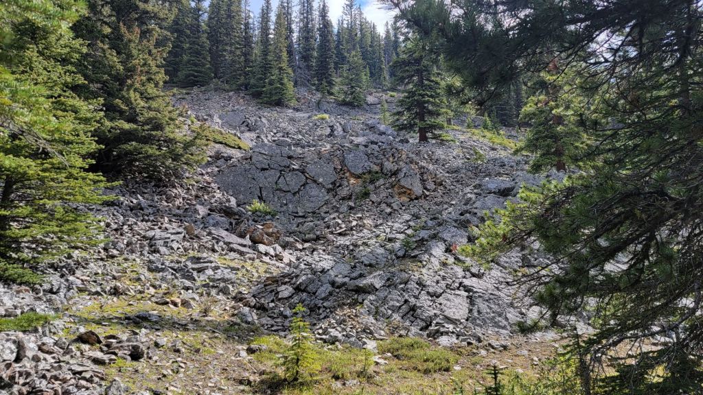 The trail now offered a bit of a reprieve. Not only did it flatten out to traverse across the slope for a bit, but it actually lost some elevation in order to go around a giant rock garden. Soon enough, I was again gaining elevation. I enjoyed the one switchback very much π