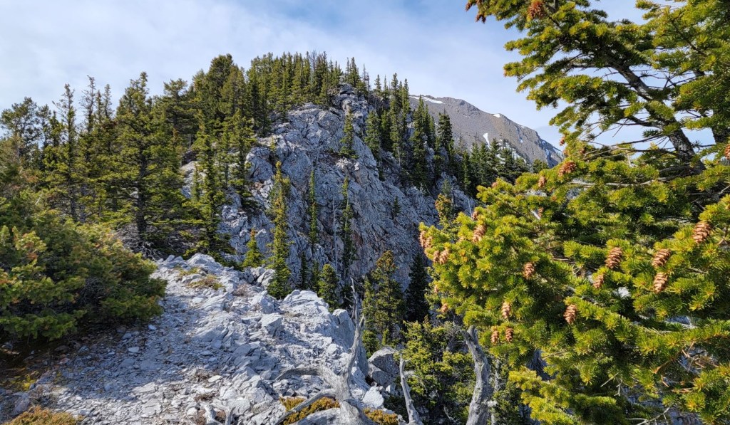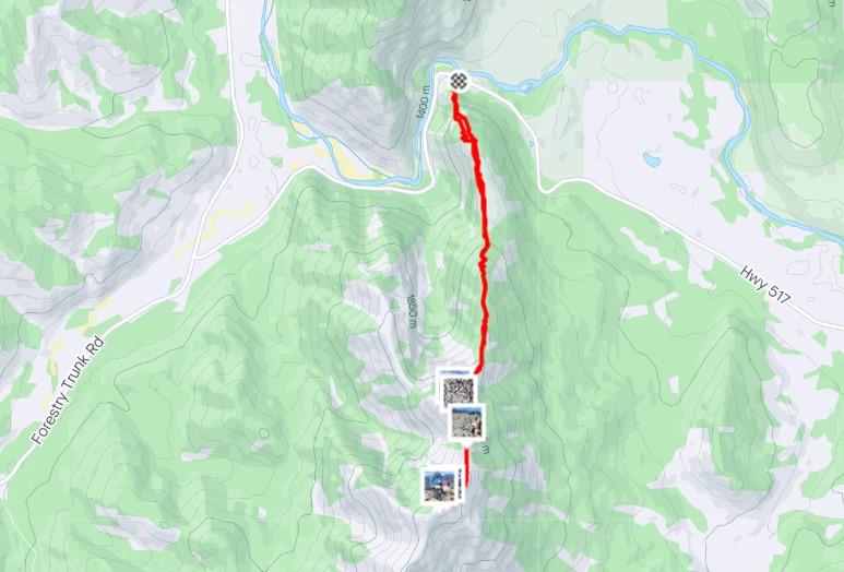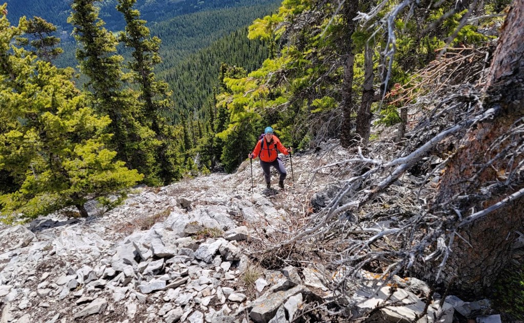 From the trail head, ascend up the side slope to the ridge. Follow it to the near vertical wall, and pick your route up. Once above this, there is a fairly long forest hike. Once on the ridge again, it’s a matter of going east and west over the ridge as we made our way up. For the final ascent, there is a long ridge with an alternate scree trail to the west. The scree route is not ideal, but on a super windy day, it makes it possible to reach the summit. Return the same way.
