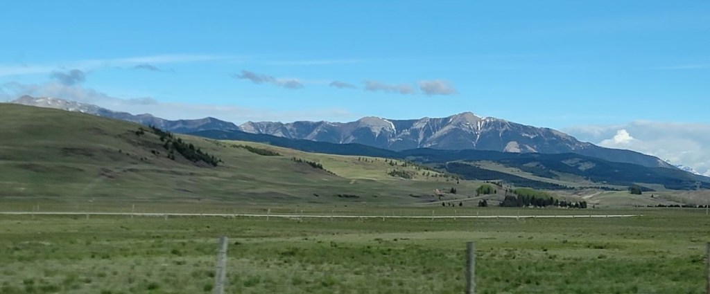 Driving towards Thunder Mountain. This is the only way to get the full expanse of the mountain because the false summit blocks the view of the true summit for much of the way.