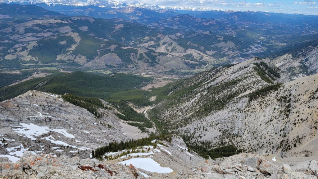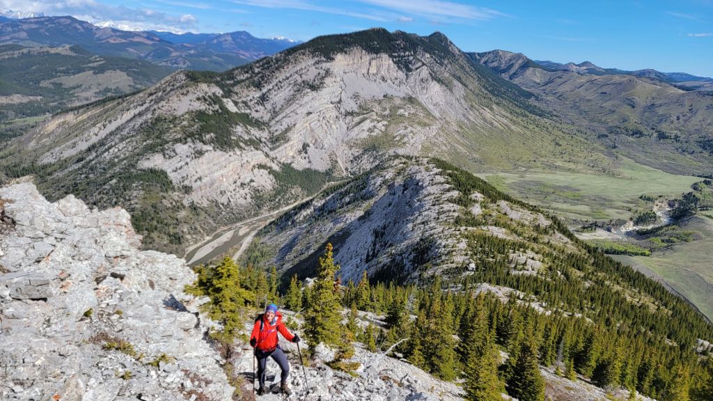 The parking spot is just around this corner, on the left. Thrift Peak is on the north side of the Old Man River.