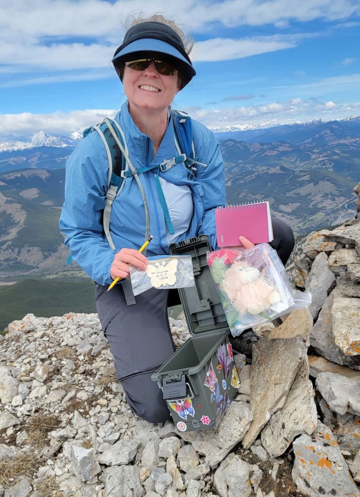 Alisen checking out the goodies in the brand new summit register box. It’s not pink but it does have the pretty stickers.