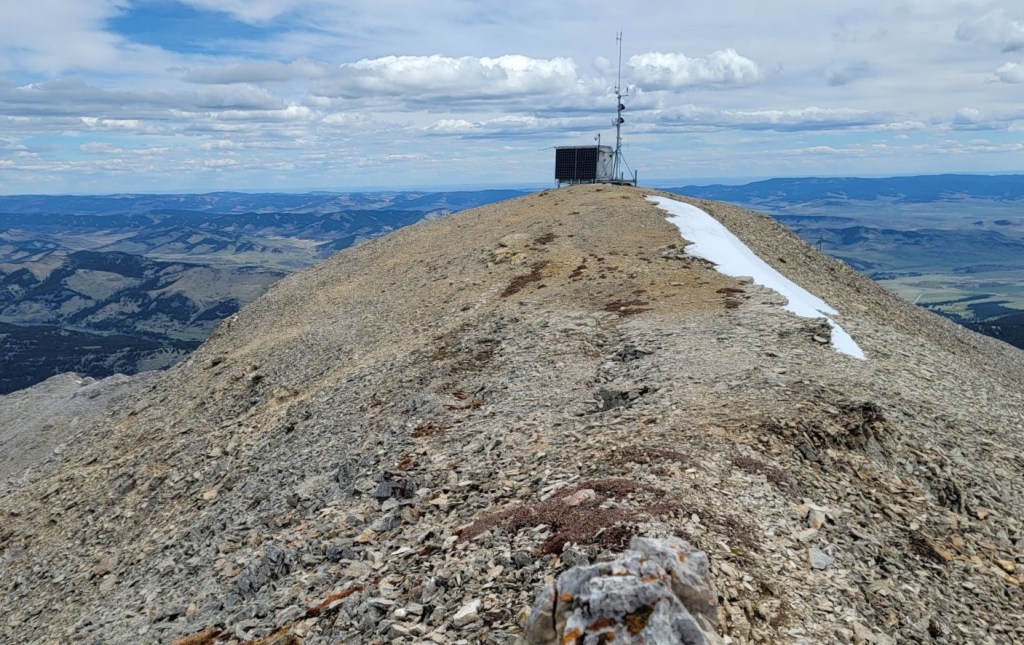 The summit of Thunder Mountain is two high points. The east side has the weather station, which makes a great place to hide from the wind and eat lunch. The west side has the summit cairn, including a new summit register box complete with goodies. Between them is the helicopter landing area, that is marked out with rocks.