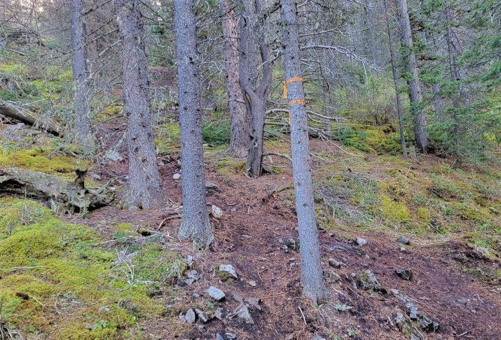 Various bits of flagging on the trees, which would be helpful for winter navigation.
