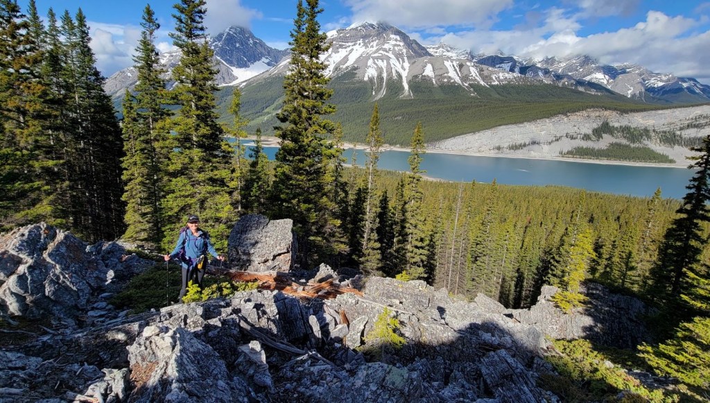 Back on the trail, we got amazing views of the col between Wind Mountain (left) and Mount Sparrowhawk (right). Mount Lougheed is further left.