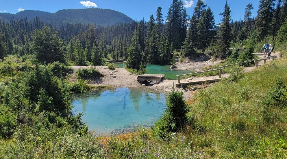 We stopped at the Ink Pots to admire the view, and do some pack adjustments. There should really be Park Wardens here on a permanent basis. SO many people were walking down to the water, eroding the banks, and putting their dirty hands in the clear water. There are signs saying to not do this, but apparently that’s for other people.