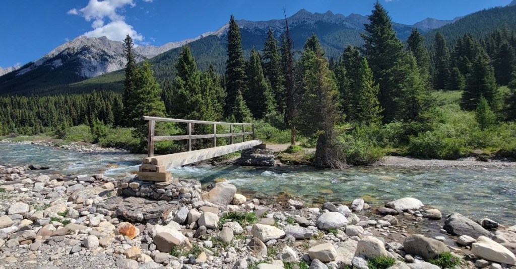 Our parking lot is called Moose Meadows. Canadian Tip: anything with the word “moose” is code for a wet and damp area. Hence, be super prepared for an onslaught of the most heinous mosquitoes! I was eaten alive within seconds of leaving the car. Thankfully, we soon left them behind as we started hiking.