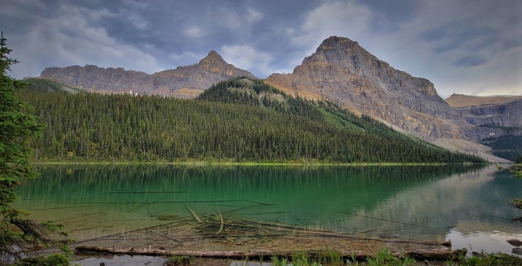 This was our second big day of the backpack in terms of distance and elevation gain. We hiked from Block Lakes campground, over Badger Pass, and then down to the next valley to the west. After a long trudge, we finally made it to Luellen Lake campground. I think most people would prefer to spend the night at the Badger Pass Junction campground, but it was fully booked with people heading north into Skoki. This meant an extra 6 km to get to Luellen Lake, but the upside was the absolutely gorgeous lake and towering mountains.