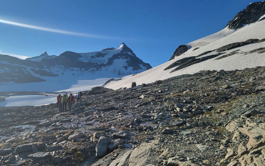 It was a long slog back down across the glacier. Once at the lower glacier, we found a small waterfall where we could replenish our water.