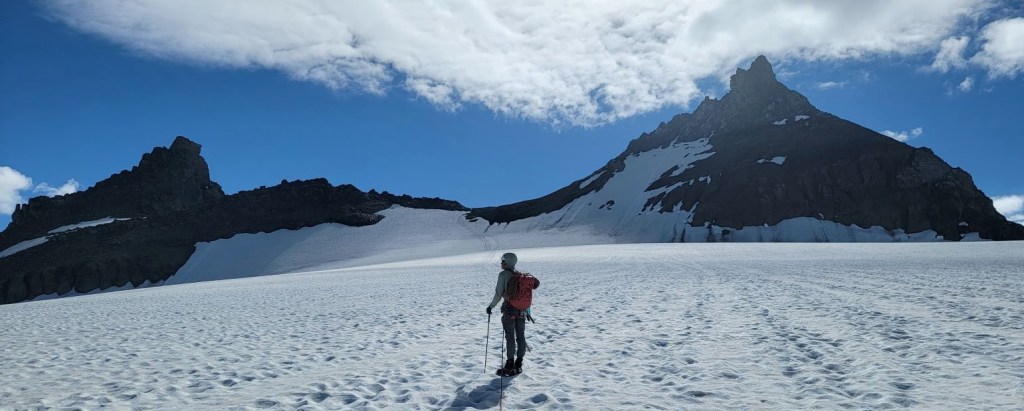We got another early start, with an even longer traverse across the glacier. I was looking longingly at my friends who were lounging in camp, smug with their upcoming short day on Mary’s Peak. Hamish, Keith and I left camp around 6:50 am, but I think we were supposed to leave closer to 6:30 am. There were a lot of changes happening at camp that Hamish had to deal with.