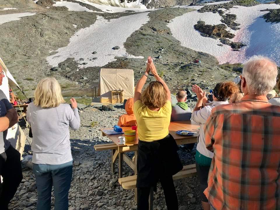 As we neared camp, I was despairing that there wouldn’t be any food left. I was positively starving. I needn’t have worried. Not only did my friends save me a big plate of food, but the camp was keeping an eye out for us. As we neared the slope above camp, we could hear the cheers of the GMCers as they spotted us. Then the cooks blew the big horn three times! It was such a joyful welcome after an awfully long and hard day. THIS is what the GMS is all about! People genuinely happy and excited for others. I am truly thankful I found this group.